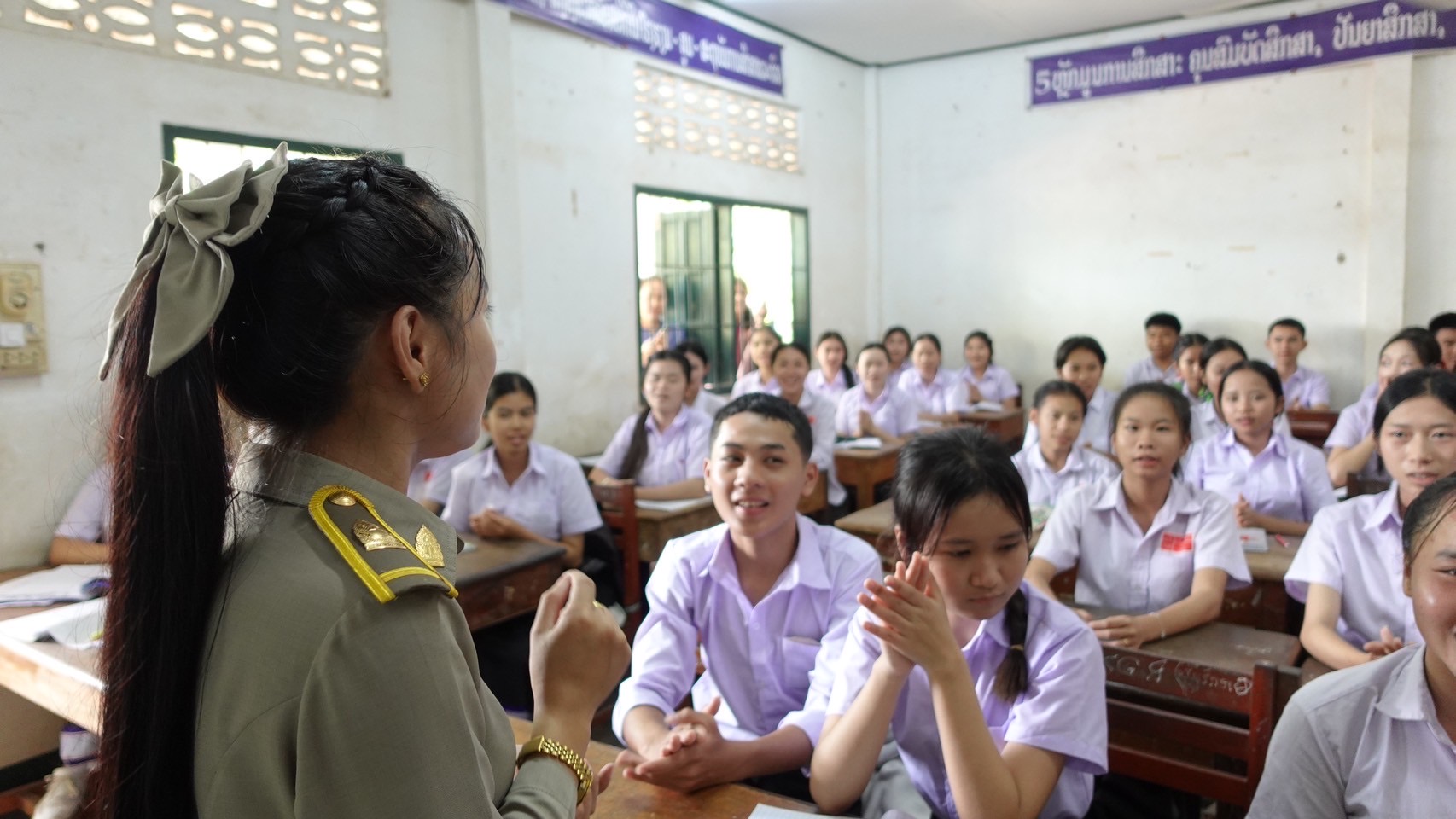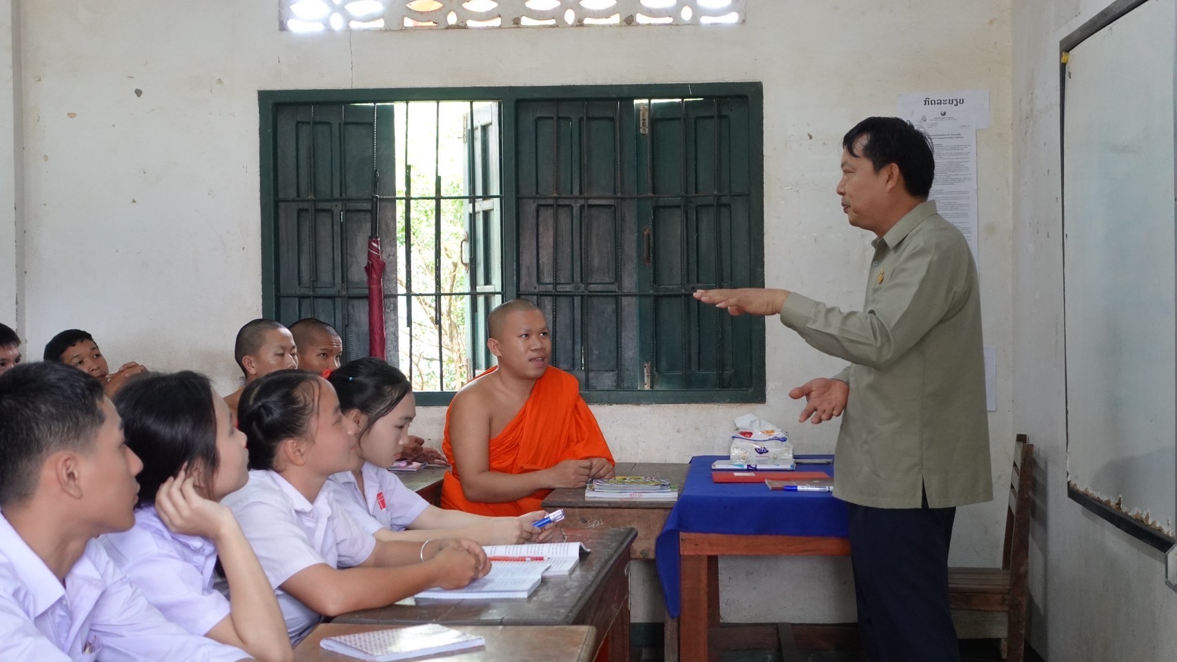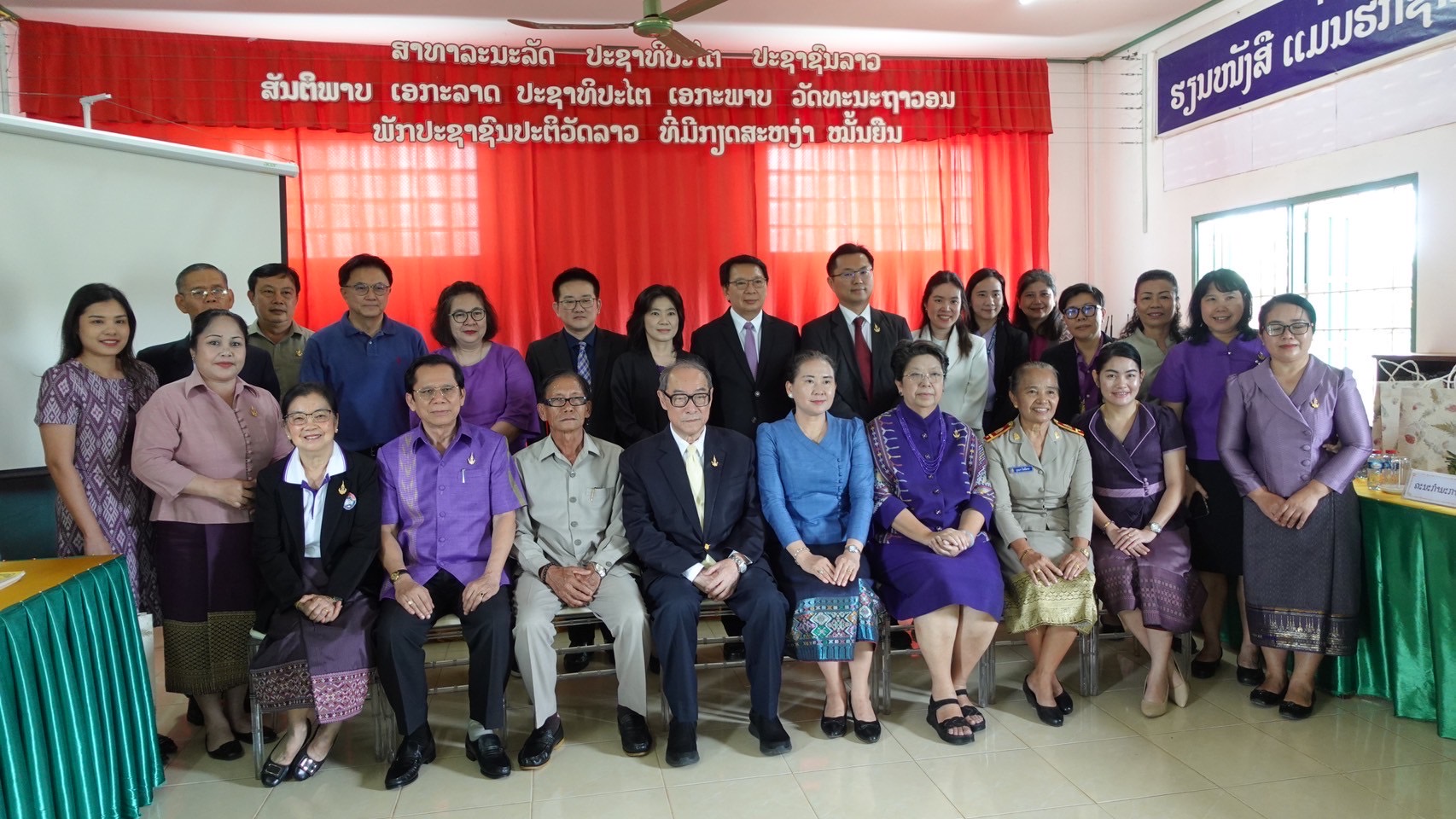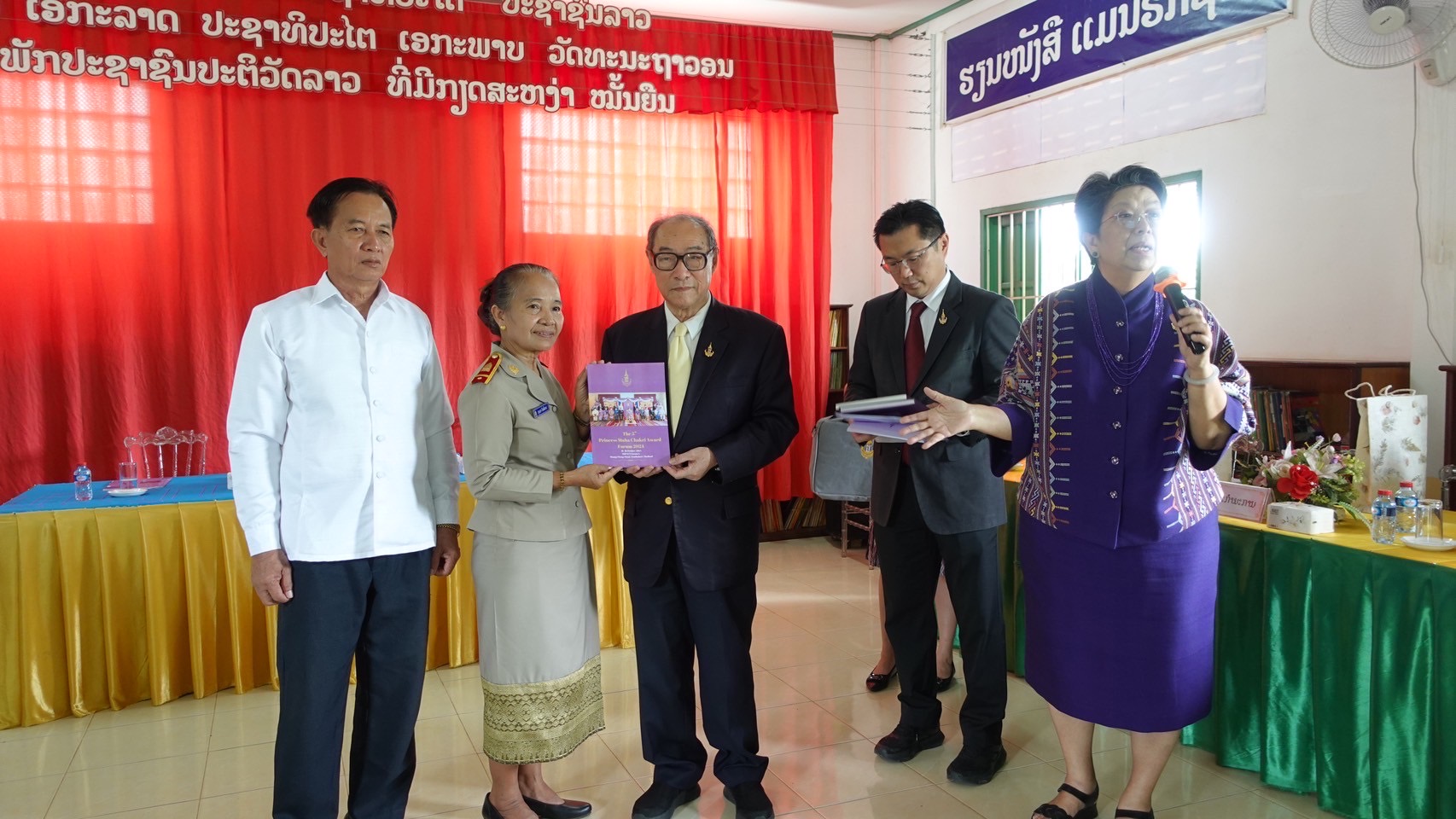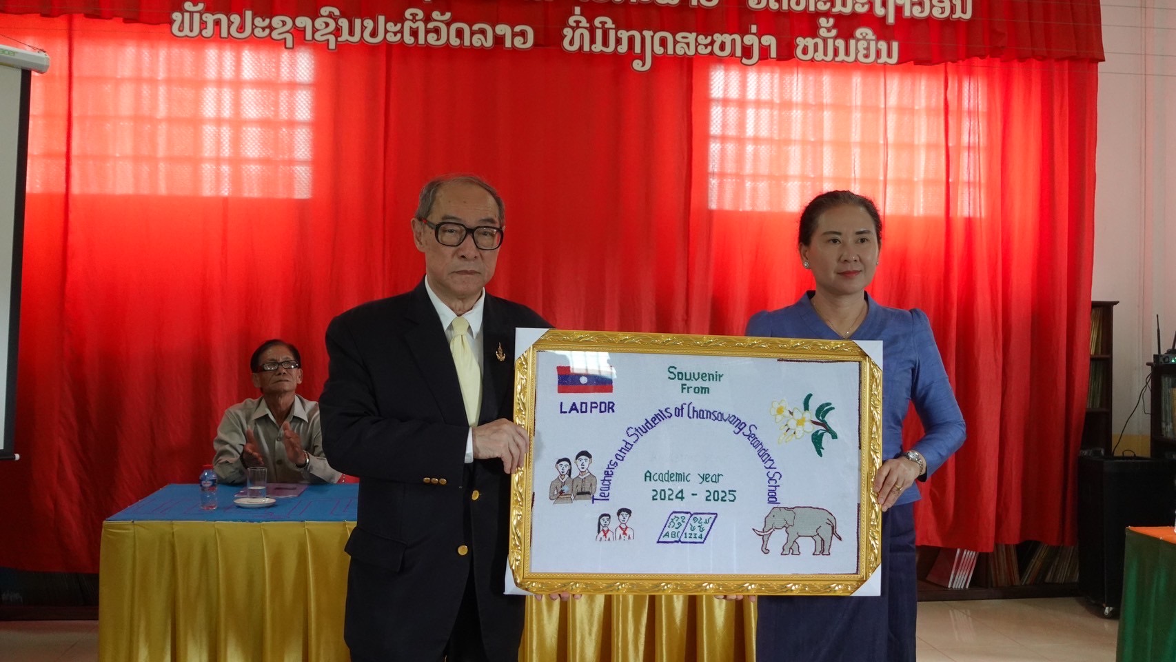 บ่ายวันที่ 9 กันยายน  2568 ดร.กฤษณพงศ์ กีรติกร ประธานมูลนิธิฯ และคณะ ได้เดินทางไปเยี่ยมโรงเรียนมัธยมสมบูรณ์จันสว่าง เมืองสีโคตรตะบอง นครหลวงเวียงจันทน์ เพื่อเยียมเยือนนางบุญมา โพธิลาด ผู้ได้รับรางวัลสมเด็จเจ้าฟ้ามหาจักรี ปี 2568 สปป.ลาว พร้อมด้วยนางพิมพิดา รวิรัฐ ธนรัช ที่ปรึกษา จากสถานเอกอัครราชทูต ณ กรุงเวียงจันทน์  ท่านนางเวียงพัน ไชยะลาด นักวิชาการ กรมร่วมมือกับต่างประเทศ กระทรวงศึกษาธิการและกีฬา และครูรางวัลสมเด็จเจ้าฟ้ามหาจักรี สปป.ลาว รุ่น 1 – 6 ร่วมเดินทางในครั้งนี้ โดยมีท่าน ทะวิไช เหมาชมพู เจ้าเมือง สีโคตตะบอง (นายอำเภอ) ท่าน จันทามะนี ใสปะเสิด เลขาท่านเจ้าเมือง สีโคตรตะบอง ท่านนาง ลีป่าเอี้ย ลีบัวเปา หัวหน้าแผนกศึกษาธิการ และกีฬา นครหลวงเวียงจันทน์ พระอาจารย์ สมยศ แสงสว่าง เจ้าอธิการวัดจันทร์สว่าง และคณะสงฆ์ ท่าน นางทุมมี ทุมมะวง ประธานสมาคมพ่อแม่นักเรียน อุดหนุนการศึกษา และท่านทองคำ พมมีไช ที่ปรึกษาสมาคมฯ และกำนัน ผู้ใหญ่บ้าน พ่อแม่ คณะครูและนักเรียนให้การต้อนรับ
