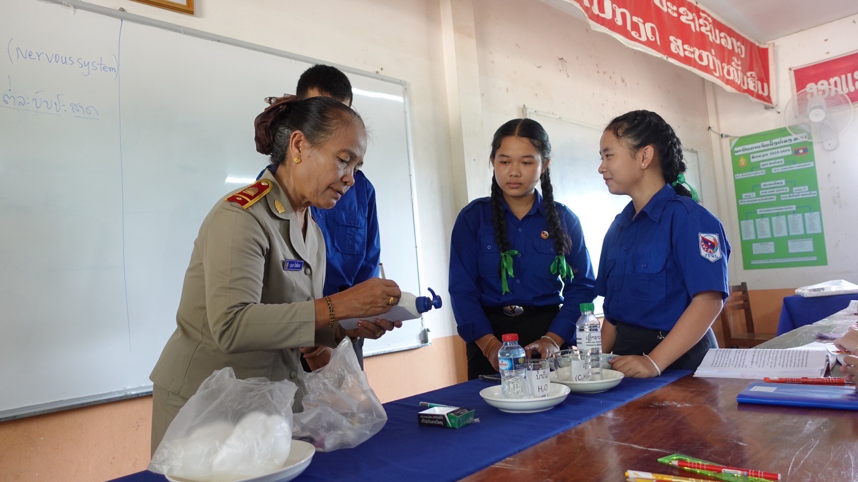 ในการเยี่ยมครั้งนี้ คณะได้ชมการสาธิตการสอนของครูบุญมา โดยสอนเคมีหัวข้อ “ยาเสพติดให้โทษ” (เคมีกับผลกระทบที่เกิดกับร่างกาย) ที่ครูบุญมาใช้สื่อสดประกอบการสอนสาธติสร้างความเข้าใจให้แก่เด็ก ๆ อาทิ การทดลองเปรียบเทียบการเปลี่ยนแปลงของตับสดหลังแช่นในน้ำเปล่ากับน้ำสุรากลั่น (เหล้าขาว) เพื่อให้นักเรียนได้เห็นการเปลี่ยนแปลงของสิ่งที่เกิดขึ้นกับตับเมื่อถูกแช่ในน้ำที่มีคุณสมบัติต่างกัน เป็นต้น อีกทั้งยังได้เยี่ยมชมห้องเรียนที่มีนักเรียนกว่า 100 คนต่อห้อง ห้องคอมพิวเตอร์ และห้องสมุด นอกจากนี้ยังได้แลกเปลี่ยนความคิดเห็นถึงปัญหาและแนวทางพัฒนาการศึกษาในอนาคต