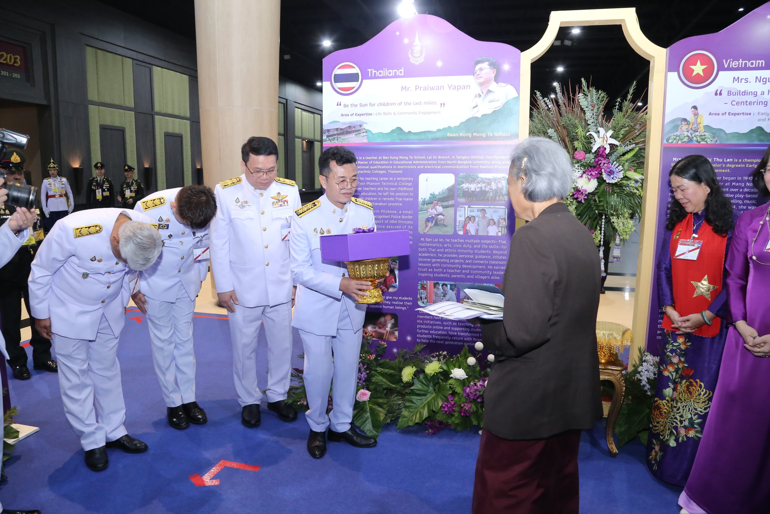 โดยมี ศาสตราจารย์นฤมล ภิญโญสินวัฒน์ รัฐมนตรีว่าการกระทรวงศึกษาธิการ กราบบังคมทูลรายงาน และเฝ้าฯ รับเสด็จ ณ อาคารอิมแพค ฟอรั่ม 2 เมืองทองธานี จัดโดยมูลนิธิรางวัลสมเด็จเจ้าฟ้ามหาจักรี ร่วมกับสำนักงานเลขาธิการคุรุสภา กระทรวงศึกษาธิการ จาก 14 ประเทศ กองทุนเพื่อความเสมอภาคทางการศึกษา (กสศ.) กระทรวงมหาดไทย กระทรวงการต่างประเทศ และหน่วยงานที่เกี่ยวข้อง พร้อมกันนี้ มีถ่ายทอดสดไปยังสถานเอกอัครราชทูตไทยในแต่ละประเทศ