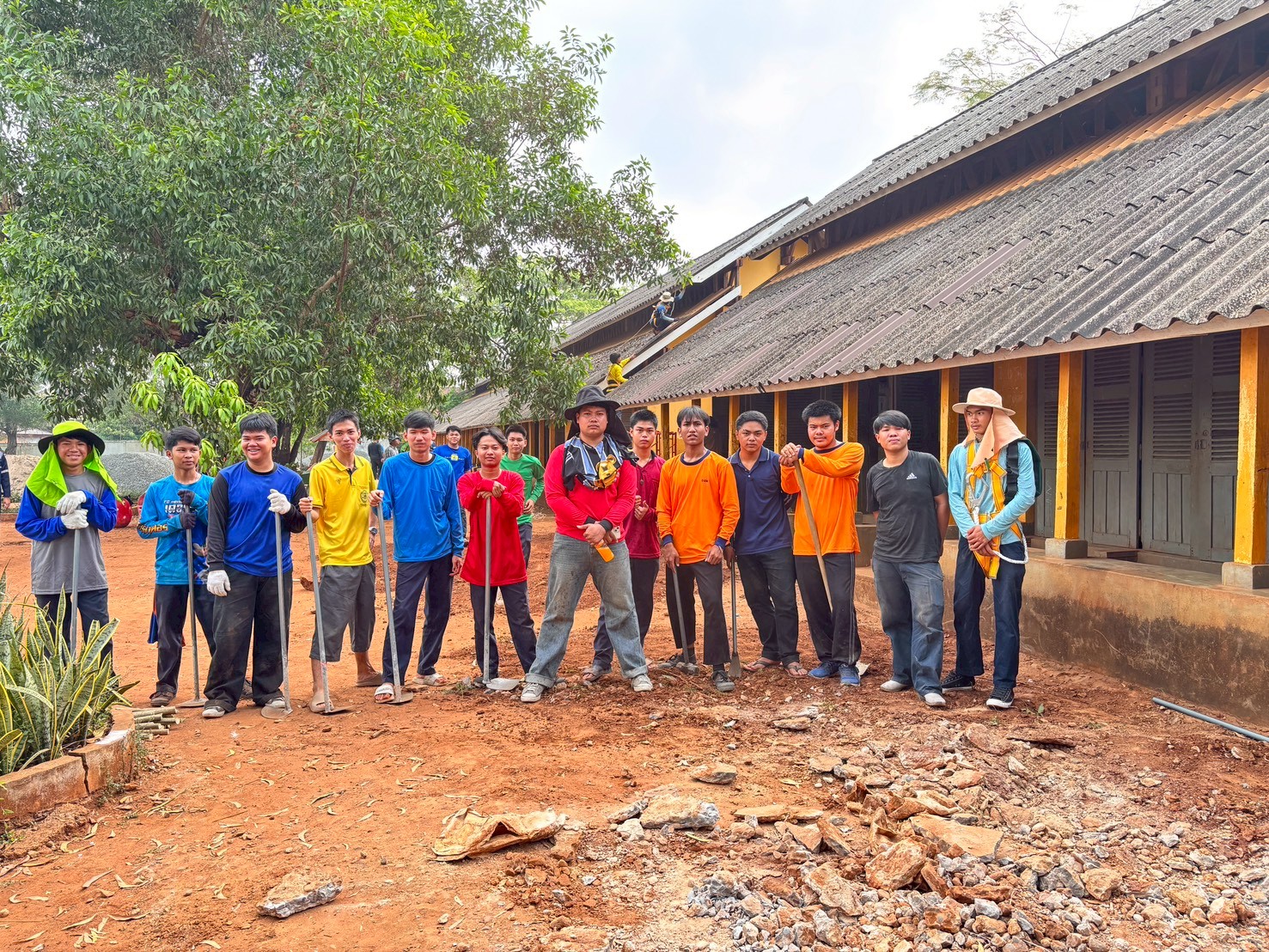 มูลนิธิรางวัลสมเด็จเจ้าฟ้ามหาจักรี ร่วมกับคณะกรรมการส่งเสริมความร่วมมือภาคสังคม และสำนักงานคณะกรรมการการอาชีวศึกษา พร้อมภาคีเครือข่ายจากภาครัฐ เอกชน และสถานศึกษา นำคณะอาสาสมัครจากวิทยาลัยเทคนิคอุบลราชธานี ลงพื้นที่โรงเรียนสมบูรณ์เพียใหม่ เมืองละมาม แขวงเซกอง สปป.ลาว ระหว่างวันที่ 19 มีนาคม – 8 เมษายน 2569 เพื่อปรับปรุงและพัฒนาโครงสร้างพื้นฐานทางการศึกษา โดยดำเนินการซ่อมแซมอาคารเรียน 2 หลัง ปรับปรุงหลังคา เสา และระเบียง ก่อสร้างห้องสุขาและจุดแปรงฟันใหม่ พร้อมติดตั้งระบบไฟฟ้า เพื่อยกระดับสภาพแวดล้อมการเรียนรู้และคุณภาพชีวิตของนักเรียนในพื้นที่ห่างไกล โดยมีนักศึกษาอาสากว่า 30 คนร่วมทำงานกับครูและชุมชนอย่างเข้มแข็ง